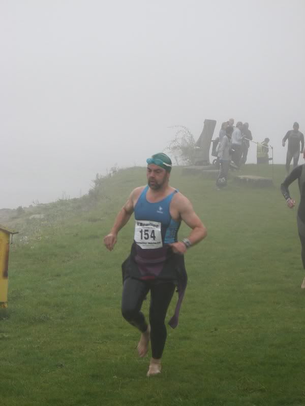 The viz was bonkers, I made it 50m and every time the wind got up, it just encouraged the lake to make more mist! The lineup along the shore looked like a miniature version of the start of the Escape From Alcatraz, very evocative. I was quite happy with the short swim, though I just about found my rhythm as I found the righthand bank (gravel)... and a buoy boat (hard)... and the exit chute (muddy). Need to work on sighting, perhaps?